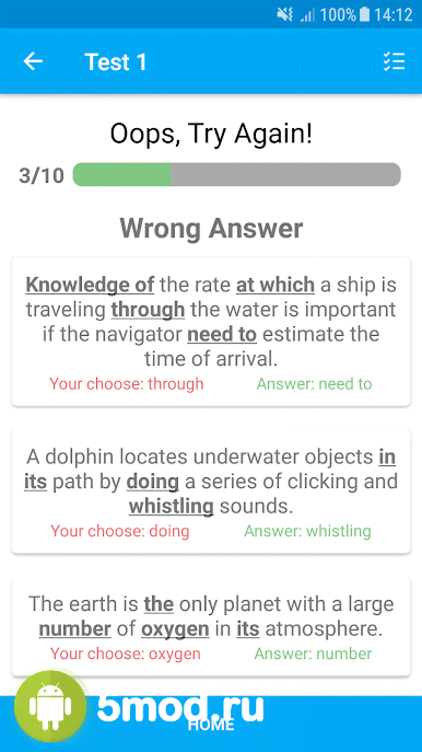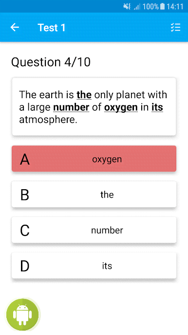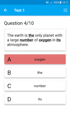 English Sentence Error Finding - отличный образовательный проект, что предлагает пользователям изучающих английский язык платформу для проверки своих знаний. Приложение использует случайную генерацию ошибок в тех или иных предложениях. Всё зависит от выбранного уровня сложности. Так что программа подойдёт для людей любой степени подготовки. Ну а участники теста должны найти ошибку и исправить её на правильный вариант. Усиливающаяся неявность задачи, большое количество тем и вариантов для деятельности, система мотивации и наград, а так же многое другое и делает English Sentence Error Finding великолепным способом подтянуть свои знания.