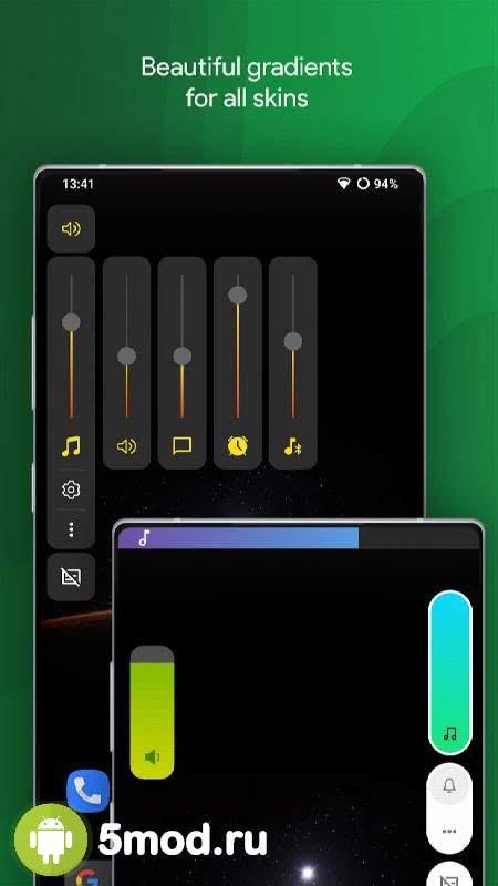 Ultra Volume: Custom Slider control & themes - проект по персонализации, что подойдёт для тех пользователей, что предпочитают если и менять, то всё. В том числе и мельчайшие детали, незначительные закладки и всё прочее, на что зачастую вообще не обращаешь внимание. В данном случае видоизменениям подвергается панель управления настройками звука. Можно менять внешний вид, цветовую палитру, расположение, наличие виджета, наборы предустановок и многое другое, что позволит владельцу получить в итоге максимально точный по его предпочтениям результат. Быстро и без лишних хлопот по определению тех или иных факторов.