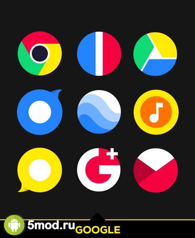 Simplicon Icon Pack - пакет с иконками, что имеют круглую форму, минималистичный дизайн, а так же очень яркую палитру цветов. Что позволяет соблюдать стиль и при этом не терять выбранные варианты на экране мобильного гаджета. Каждый из элементов сияет и обращает на себя внимание. В распоряжении поклонников персонализации почти 6 тысяч наименований (и список растёт), коллекция обоев, что идеально подойдёт для этого направления, а так же удобная система установки и настройки параметров. Что делает процесс комфортным и совершенно беззаботным для пользователей любого уровня опыта общения с подобными приложениями.