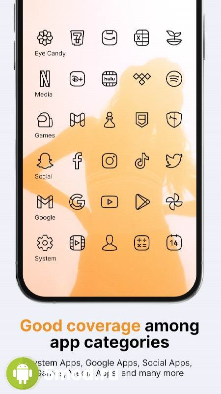 Caelus Black: linear icon pack - ещё один проект по персонализации, что развивает одну из популярных линеек пакетов с иконками одного стиля и дизайна для рабочего стола мобильного устройства. В этом случае пользователи смогут применить вариацию с тёмными и тонкими линиями, а так же максимальной прозрачностью элементов. Ни каких границ или рамок. Только сами значки будут выделяться на фоне. Обои так же есть в комплекте и они не менее привычно для программ этого толка весьма привлекательны для оттенения выбранных значков. Так что фанатам и ценителям стоит обратить внимание на подобную возможность.
