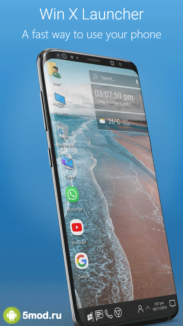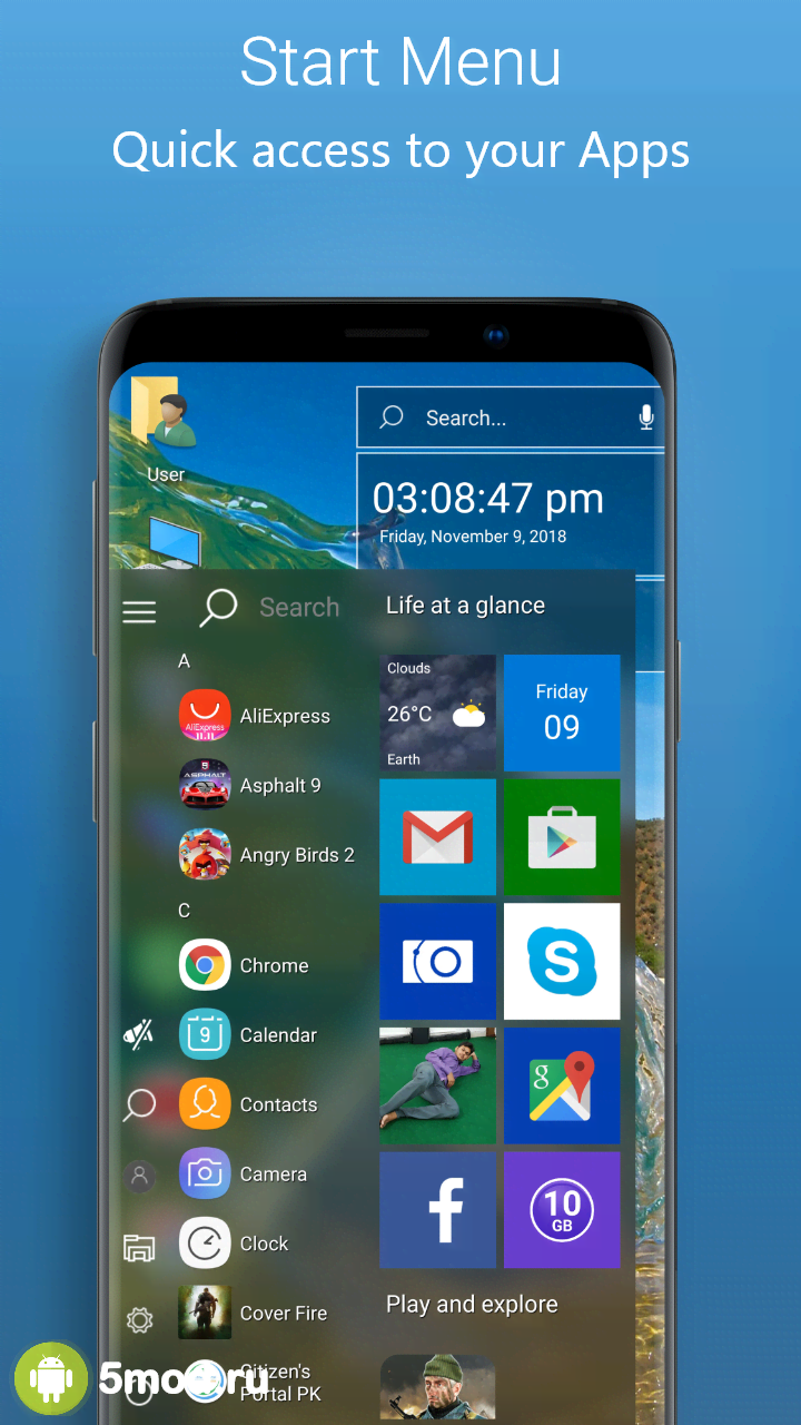 Computer Launcher - мощный, проработанный, функциональный и обладающий всеми необходимыми качествами лаунчер, что понравится поклонникам персонализации и в особенности тем, кто не очень любит стандартное расположение иконок, меню и всё прочее, что присуще Android-оболочкам. С помощью данной программы они смогут превратить внешний вид рабочего стола, а так же внутренние закладки и так далее практически в полное подобие Win 10. Тут так же есть и встроенный файловый менеджер и многие другие качества, что обеспечивают полноценную работу с гаджетом без обращения к сторонним приложениям.