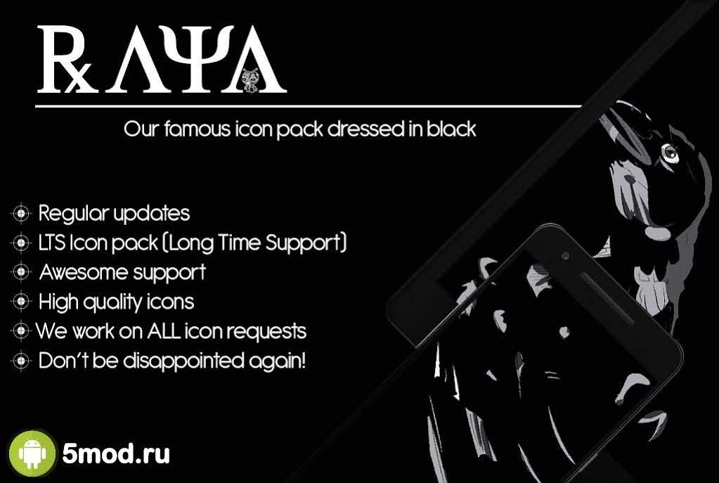 Подписаться на новость Raya Black Icon Pack - 100% Black 213.0 Мод (полная версия)