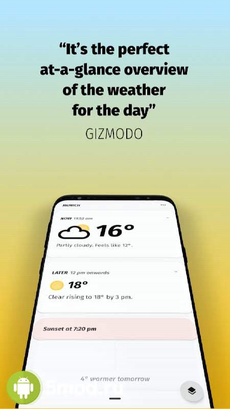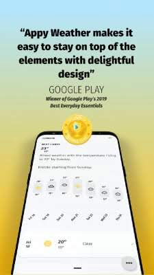 Appy Weather the most personal weather app - погодное приложение созданное для тех пользователей, что хотят получать только полезную информацию. Сжатую и максимально понятную. Без пёстро и загруженных по цифрам бесполезных значений, колебаний, статистики и так далее. Всё это в минималистичном исполнении. Система настройки обеспечивает возможность и персонализации получаемой информации. Так что любой желающий сможет выстроить именно ту структуру взаимодействия с прогнозом на ближайшее время, что будет отвечать всем его требованиям. Ну а система оповещений не позволит пропустить что-то важное.