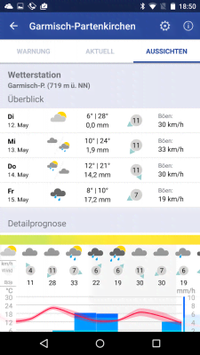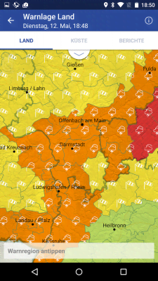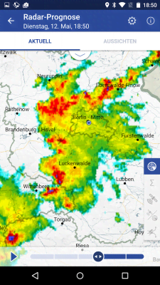 WarnWetter - погодное приложение, что порадует тех, кто предпочитает воспринимать подобную информацию не только с помощью сухих цифр, но и визуально. Программа разделяет карту на ячейки и предоставляет данные с помощью значков и цветовой палитры. Так можно определять районы с усилением ветра, находить места где выпадают осадки и какие, а так же получать наглядное подтверждение приближения очередного природного ненастья. Качественное исполнение, различные функции и настройки, интеграция с социальными медиа, а так же многое другое делает приложение крайне любопытным для всех ценителей данной категории.