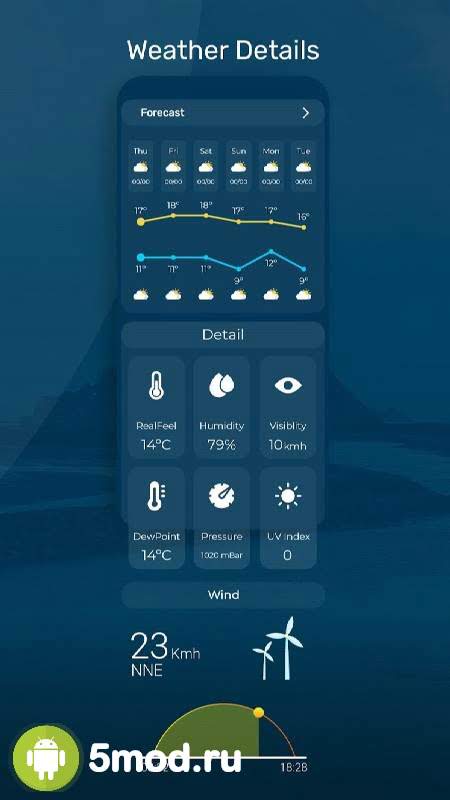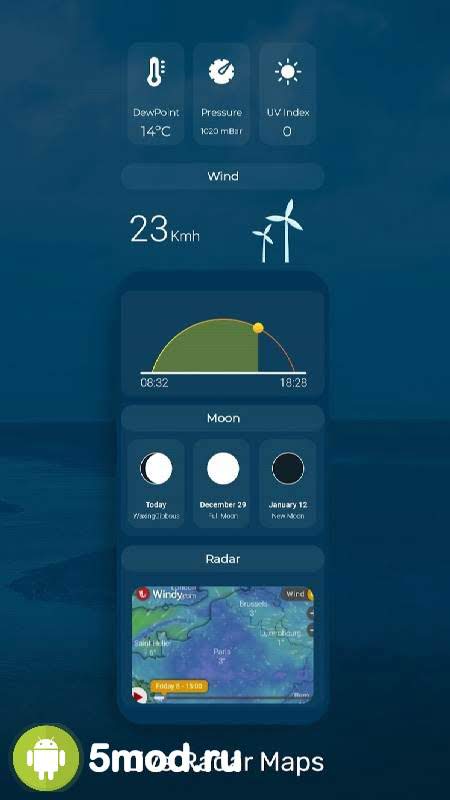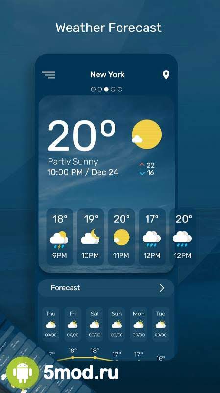 Weather Forecast - Accurate and Radar Maps - очень стильно исполненное программное обеспечение в сфере информирования пользователей о погоде и прогнозах на будущее. Проект можно использовать и как украшение рабочего стола, а не просто источник полезных данных. Удобное управление, автоматически определяемое местоположение, регулярные обновления и система настройка всего, что будет выводиться в первую очередь поможет максимально комфортно и продуктивно взаимодействовать с функционалом Weather Forecast. Поклонники использования только самого качественного останутся более чем довольны полученными возможностями.