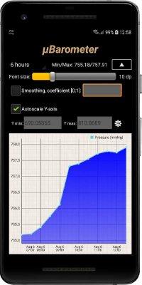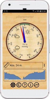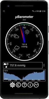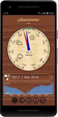 mu Barometer - погодной категории приложение, что предлагает пользователям заполучить на своём мобильном гаджете простой в использовании барометр атмосферного давления. Всё настраивается под требования и нужды владельца. Как по функционалу, так и по внешнему виду. Так что можно будет с лёгкостью предугадывать дальнейшие события и при этом получать удовольствие от лицезрения симпатично выглядящей шкалы. Так же можно и не запускать полностью программу, регулярные обновления и выведения показателей в информационную строку на рабочем столе позволяет всегда быть в курсе изменения данных.