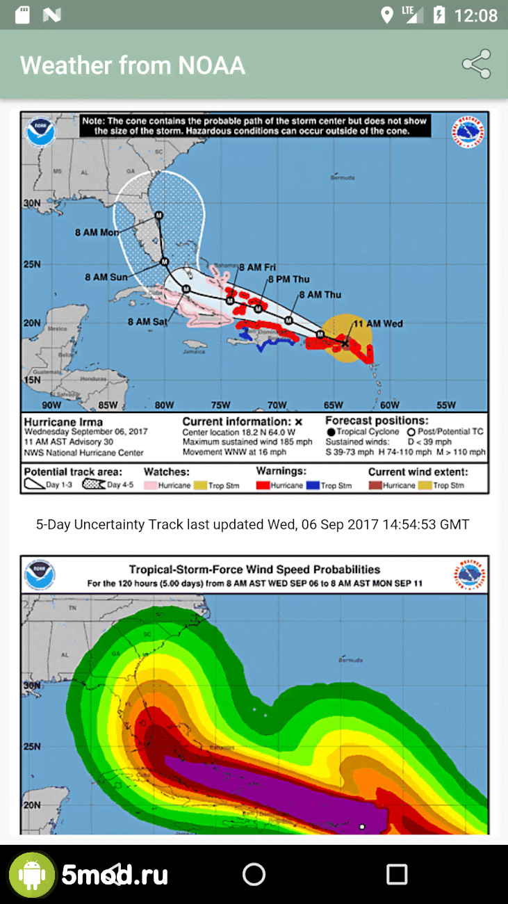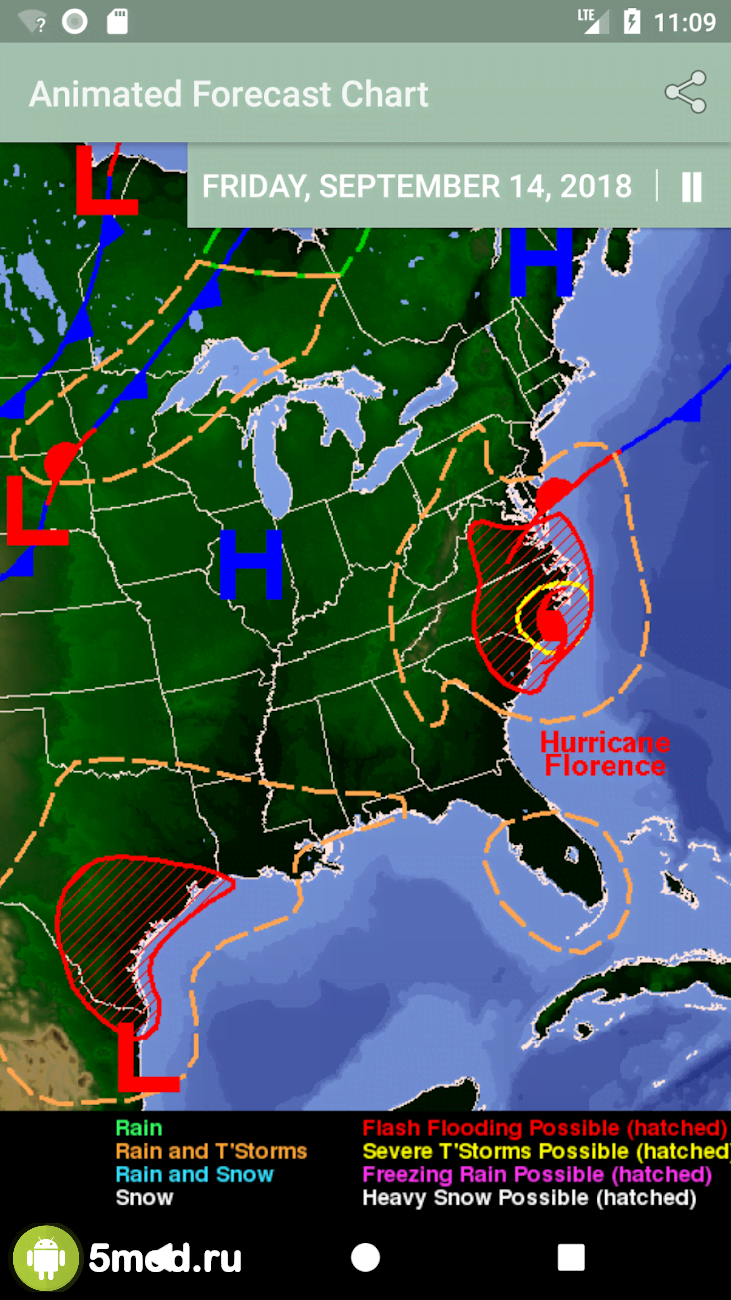 Weather from NOAA - погодное приложение имеющее более профессиональное назначение чем другие в этой сфере. Проект получает данные NOAA или Национального управления океанических и атмосферных исследований США. Это федеральное ведомство занимается прогнозами в метеорологии и геодезическими исследованиями. Поставляемые работниками данные используются в самых разных сферах и серьёзной деятельности. Благодаря программе пользователи получат доступ к системе предупреждений о различных малоприятных явлениях, циклонах и прочем. И всё это в анимированном исполнении и высокой детализации.