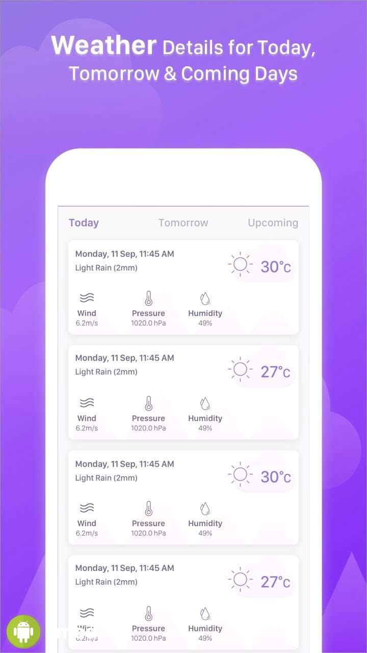 Accurate Weather Forecast - Live weather Condition - погодное приложение, что будет крайне полезно для часто путешествующих, командировочных и прочих людей, что регулярно перемещаются из области в область. Даже малейшая смена координат приводит к ситуации, что имеющийся прогноз становится неактуальным, а зачастую и показывающим диаметрально противоположные значения. Данная же программа в автоматическом режиме определяет местоположение пользователя и обновляет всю необходимую информацию. Разные настройки и определения, анимация погодных явлений и высокое качество исполнения понравится всем кому нужен такой функционал.