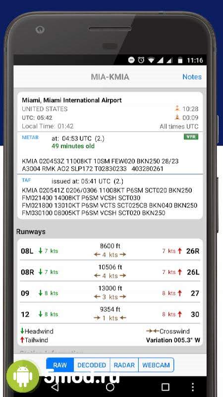 PilotWeather - полезное приложение для всех пилотов самых разных размеров самолётов. Им предлагается альтернативный источник данных о погоде на всём протяжении предстоящего им полёта. При этом всё это проходит в профессиональном ключе и декодируются уже на экране этой программы. Так же приводится информация и о восходе или закате, высоте, часовом поясе и так далее. С помощью PilotWeather любой может в случае необходимости получать дублирующие данные, обновляемые в реальном времени. Минималистичный дизайн без лишних особенностей обеспечивает мгновенное восприятие без детального рассмотрения показаний.