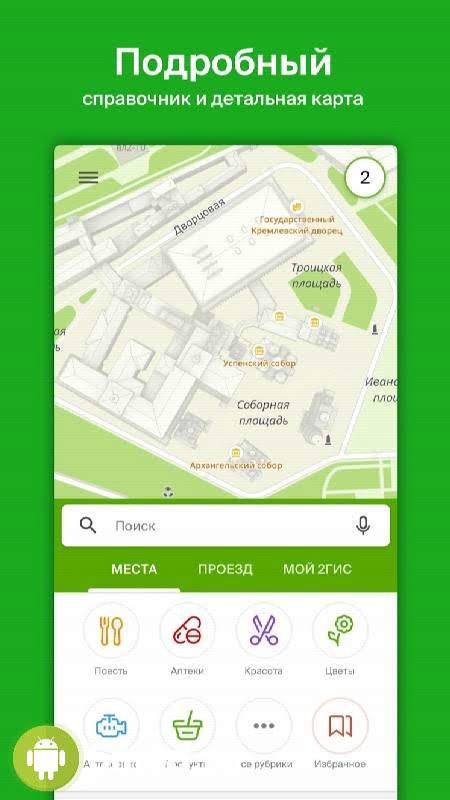 2GIS: directory, map, navigator without internet - весьма популярный справочник, что уже давно вышел за границы изначального набора возможностей и превратился в быстро развивающийся многофункциональный комплекс. Востребованность была достигнута за удобство поиска, комфортное управление, а так же всегда актуальные данные. Получение исчерпывающей информации, продолжение маршрутов, навигатор для автовладельцев, путеводитель, покупка товаров, доставка, а так же многое и многое другое и обеспечивает приложению закономерную репутацию среди тех кто хочет получить всё и в одной оболочке.