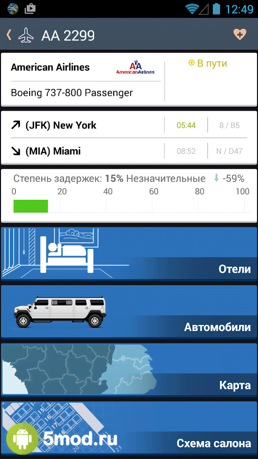 Airline Flight Status Tracker & Trip Planning - полезное приложение для всех путешественников предпочитающих авиасообщение между городами, странами и уж тем более, континентами. Программа позволяет не только отслеживать огромное количество рейсов, самолётов самого разного назначения, загруженность аэропортов, отмены, задержки и всё прочее, но и получать сводки о погоде, схемы терминалов, поиск отелей с помощью booking.com, арендовать автомобили, а так же многое другое. Всё это в одной оболочке станет верным помощником любого кто ценит своё время и предпочитает знать, а значит, быть готовым к любой возможной ситуации в пути.