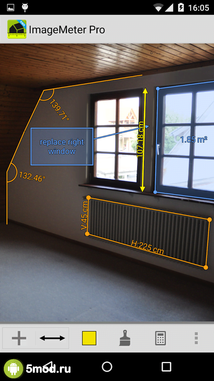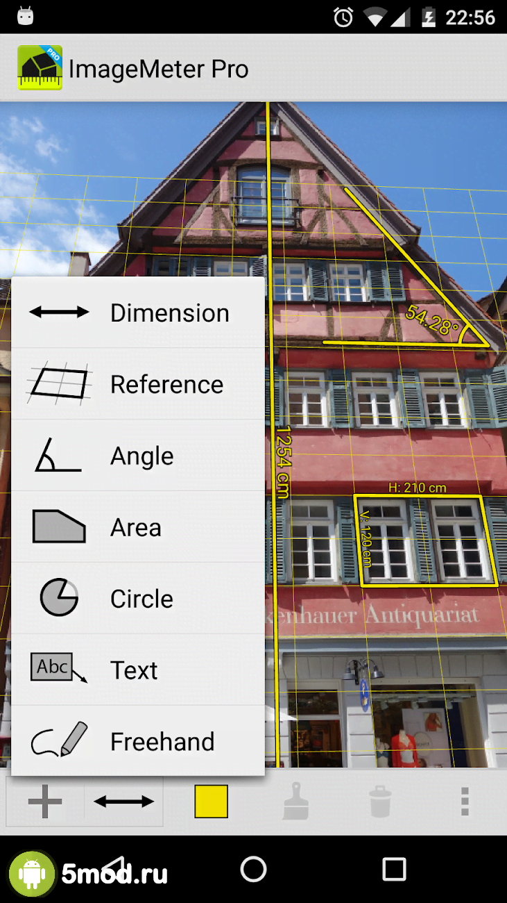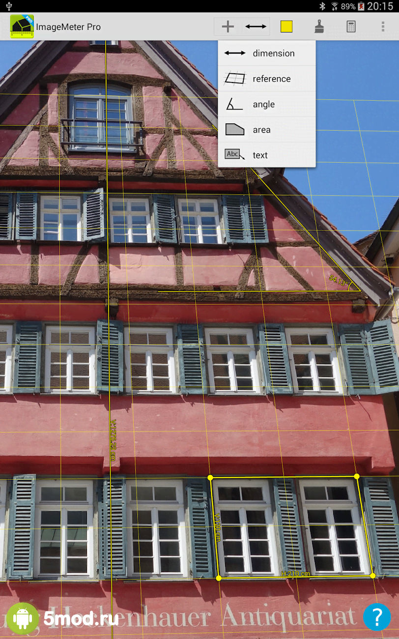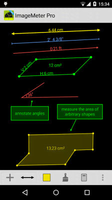 ImageMeter Pro - photo measure - отличное приложение применение которому можно найти в огромном количестве жизненных ситуаций, при решении широкого спектра задач и в профессиональной деятельности и в бытовой сфере. Проект представляет возможность измерять расстояние, углы, периметры, площадь и объём. И всё это с последующими вычислениями, сохранением в памяти и так далее. Ремонт, строительство и обычная перестановка теперь может обойтись без рулетки и записей от руки. Ну а использование ImageMeter для работы делает её невероятно полезной для любого.