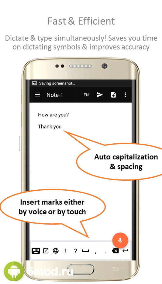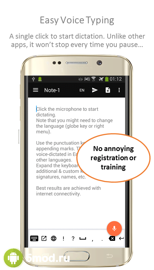Speechnotes - Speech To Text - полезное приложение для всех кто не любит набивать сообщения на виртуальной клавиатуре по тем или иным причинам. С помощью этой программы можно с лёгкостью наговаривать текст любой сложности и продолжительности (так что можно использовать не только для взаимодействия с мессенджерами), вставлять эмодзи, редактировать, а после отправлять и всё это без контакта с экраном гаджета. Высокая точность распознавания речи, удобство управления возможностями, настройка имеющихся функций и многое другое обеспечит только самые положительные впечатления от работы с данным проектом.