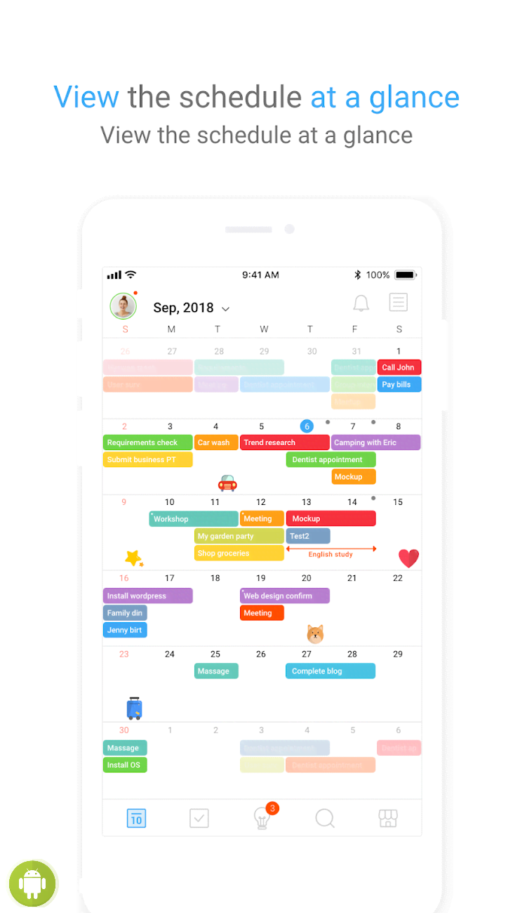 TimeBlocks - Calendar/Todo/Note - отличный ежедневник, что больше подойдёт для тех кто воспринимает информацию визуально. Календарная система, различные цветовые плашки и отметки, значки и пометки обеспечивают очень наглядное восприятие заложенных данных. Отличительной особенностью и серьёзным плюсом программы является крайне удобное, интуитивное управление функциями, редактированием положений и прочим, что есть в данном приложении. Синхронизация с устройствами и другими пользователями, возможность ведения сразу нескольких проектов, отсутствие границ по количеству записей и многое другое порадует всех кто мечтал о таком помощнике.