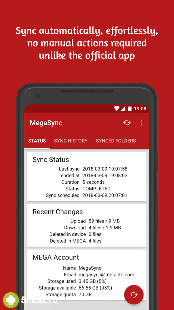 Autosync for MEGA - MegaSync - приложение тире клиент, что призвано существенно упростить и ускорить взаимодействие и синхронизацию при работе с MEGA (mega.nz). В списке может быть несколько устройств, что обеспечивает максимально продуктивную деятельность. Так же можно пересылать, загружать, перемещать, скачивать и всё прочее с помощью данного помощника не обращаясь к другим гаджетам. Подобную механику удобно использовать и для бытового применения и для полноценной работы. Ну а система настройки поможет подогнать всё чисто под свои требования и нужды.