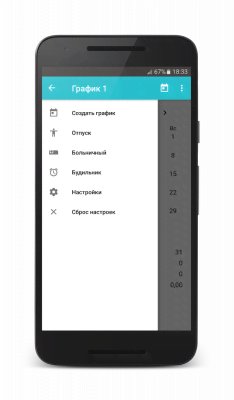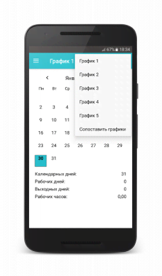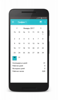Shift schedule - минималистичного дизайна, но весьма полезной начинки проект, что очень упростит жизнь всем кто работает по сменам. С его помощью можно быстро выставить расписание, включить автоматический режим, что поможет забыть о необходимости ручного продления данных на следующий отрезок времени, применить цветовое решение, что обеспечивает более наглядный внешний вид календаря, а так же многое другое. Среди которого, в том числе, есть и будильник, что не позволит пропустить работу и оказаться в неприятностях. Так же есть и подсчёт отработанных часов, для более полного понимания ситуации и собственной отчётности.