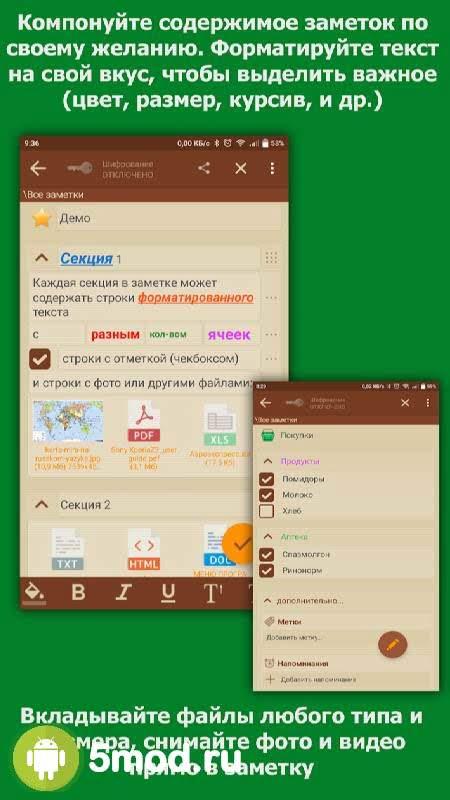 VIP Notes - protected notepad with attachments - программа-блокнот, что несмотря на своё незатейливое изначальное предназначение является на самом деле весьма внушительным по своим качествам комплексом возможностей и инструментов для полноценной работы с текстом. При этом приложение может быть защищено самыми разными способами, а так же всё содержимое просто-напросто зашифровано. Система настроек позволяет детально настроить внешний вид и механику всех процессов, а удобство управление обеспечивает оперативную работу со всеми представленным функционалом. Который здесь более чем впечатляющий и полезный на все случаи жизни.
