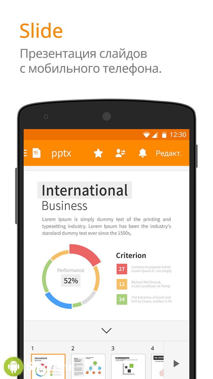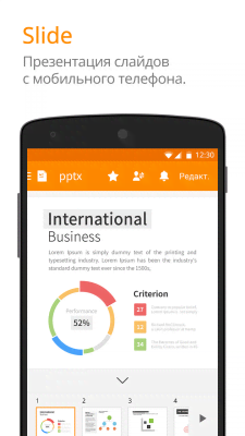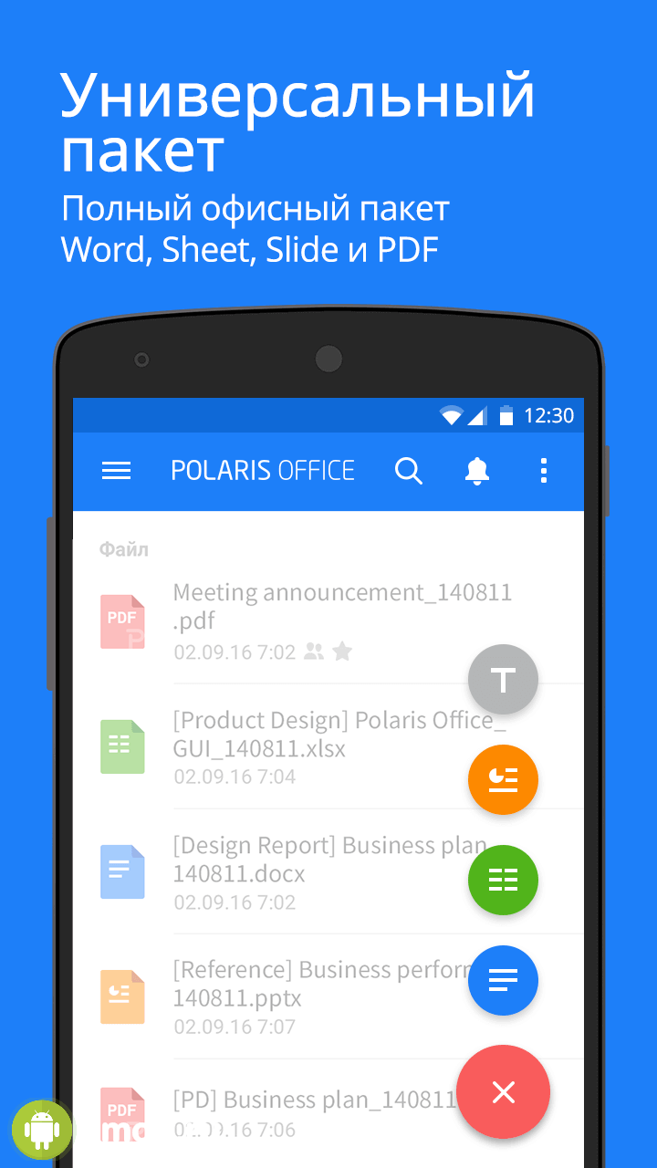 Polaris Office - Word, Docs, Sheets, Slide, PDF - безусловно нужное приложение для всех кто использует мобильные устройства для работы с различными документами. Особая польза данной программы в том, что она абсолютно без каких-либо проблем и трудностей взаимодействует с файлами созданными в MS Word, Excel, PowerPoint, Adobe PDF и прочих, что так любят требовать оригинальные приложения. Так же функционал и удобное управление позволяет не только открывать и проводить простую редакцию, но и полноценно работать создавая презентаций любой сложности и многое другое.