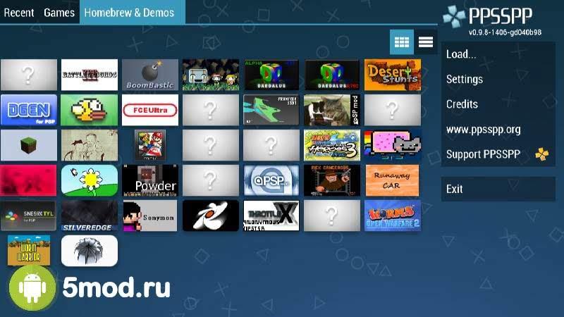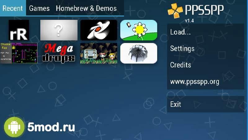 Приложение призвано помочь тем, кто хочет поиграть в любимые хиты с PSP на своем смартфоне или планшете. Главная страница включает в себя недавние игры, которые были запущены, игры, которые приобретены у вас и хранятся в памяти устройства, а также различные демки для проверки работоспособности тех или иных функций.