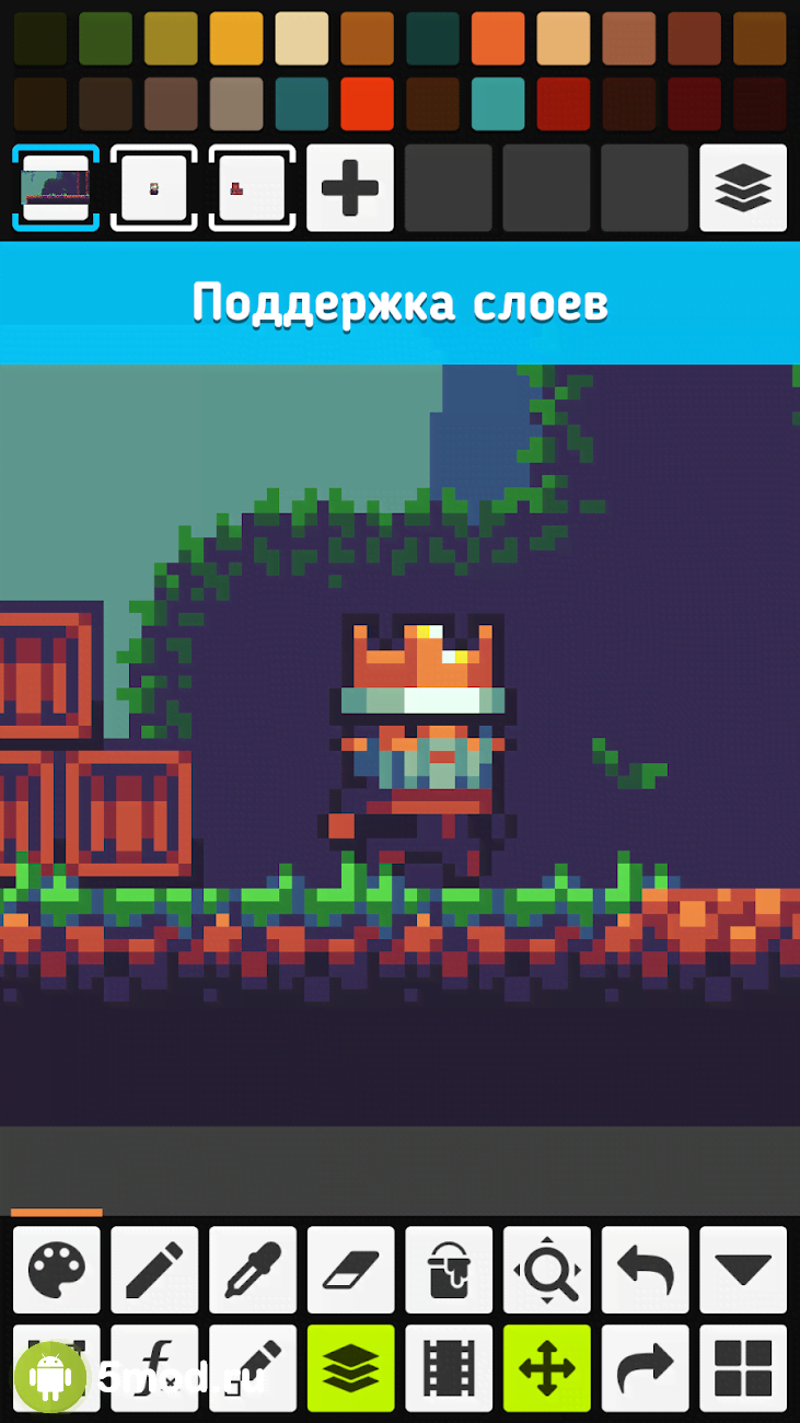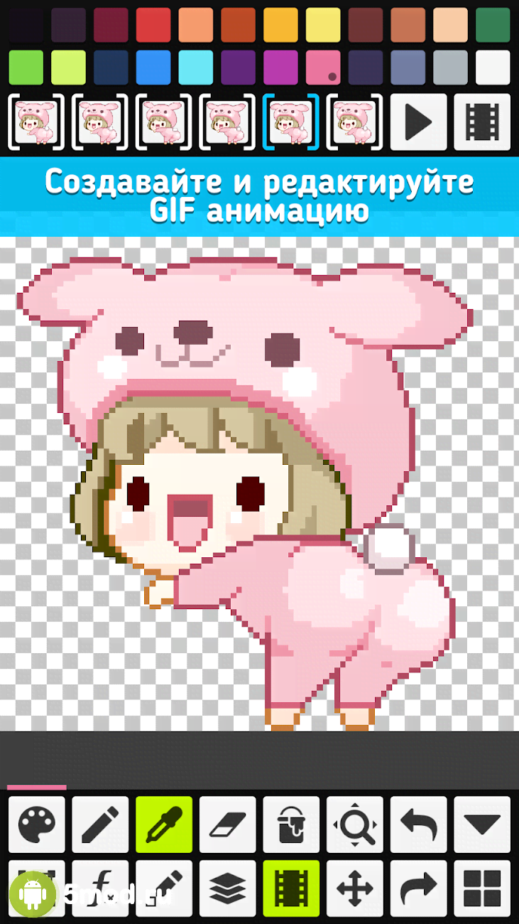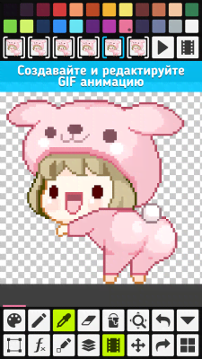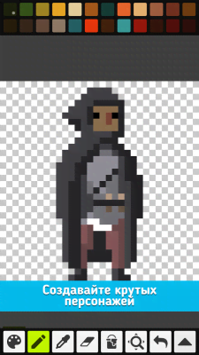 Pixel Studio - Pixel art editor, GIF animation - отличный проект для художников, аниматоров, людей занимающихся пиксел-артом и прочим. В данном приложении они смогут рисовать по пикселам закрашивая пространство холста. А вот его размер не ограничены и самые устойчивые и целеустремлённые получат впечатляющий результат, что можно будет с трудом отличить от картины созданной в схожем приложении, но уже с помощью привычных кистей. Огромные разнообразие возможностей и удобство управления ими делают эту программу настоящим подарком для творческих личностей.