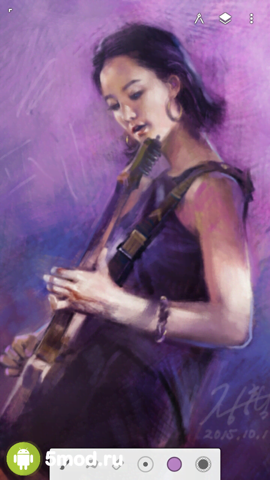 Как и во многих подобных приложениях у вас будет галерея рисунков. Здесь вы сможете открыть одну из ваших работ, чтобы продолжить её, дополнить или вовсе удалить. Естественно, можно создавать новые шедевры, выбирая разрешение будущего листа, фон и прикрепляя изображения с памяти устройства, либо создавая новый снимок при помощи встроенной в смартфоне камеры. Каждая кисть, а их более 160 пресетов, уникальна по-своему и предлагает продвинутый алгоритм для рисования. При желании вы сможете самостоятельно создавать кисти и наблюдать за реалистичным процессом взаимодействия с текстурной бумагой.