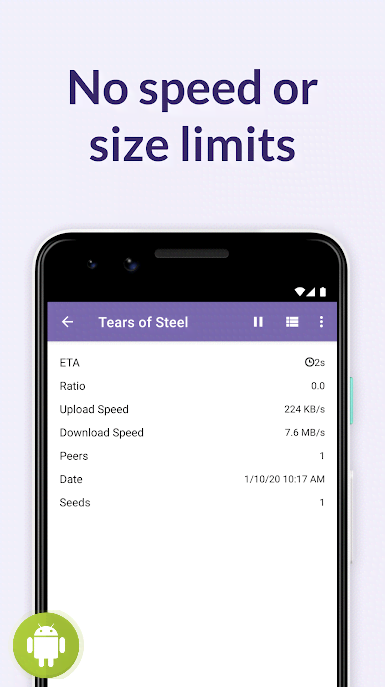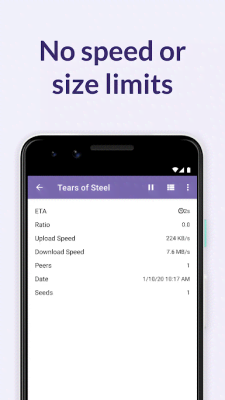 BitTorrent® Pro - Official Torrent Download App - отличный проект для всех кто регулярно и на постоянной основе имеет дело с торрент-файлами, ресурсами на которых они располагаются и так далее. Данное приложение призвано существенно облегчить всю подобную работу на мобильных устройствах. Автоматические процессы, удобный поиск, сохранение, экономия заряда батареи, отсутствие каких-либо ограничений по скорости или же размеру, встроенные плеера позволяют тут же просматривать файлы, а так же многое другое в списке возможностей и функций, что и делают программу правильным выбором среди прочего разнообразия.