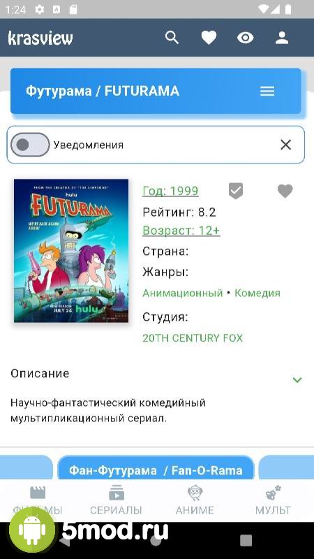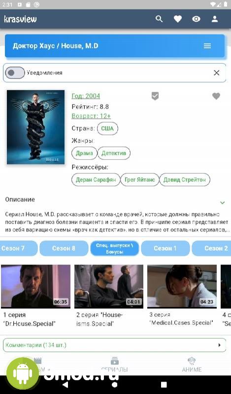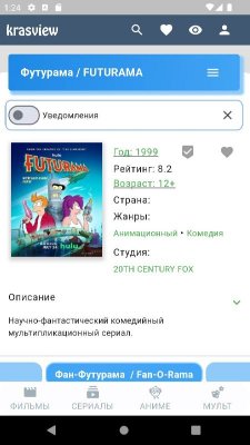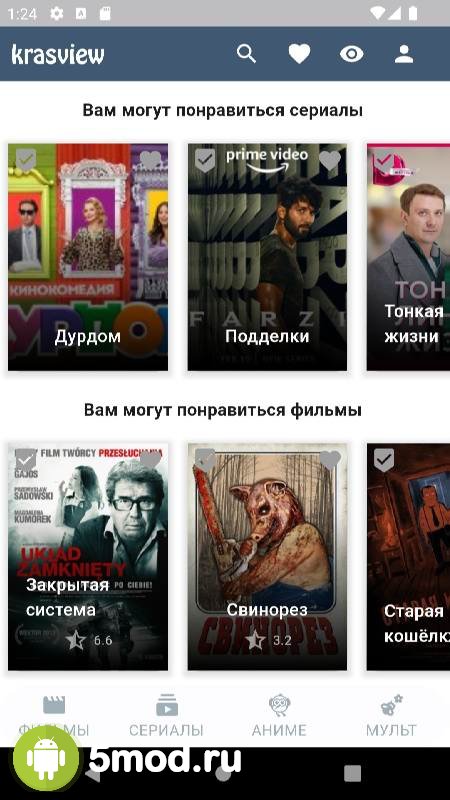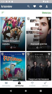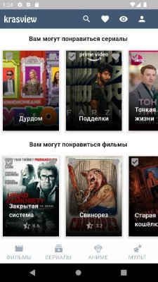 Krasview - приложение для поклонников просмотра кино, сериалов, аниме и прочего развлекательного контента разных жанров, хронометража и наполнения на экранах мобильных устройств. Проект понравится не только самим этим фактом, но и тем, что он предлагает огромное разнообразие произведений. Как среди уже практически классических, так и среди новинок. Так что проект может стать оптимальным выбором для подбирающих для себя программу из этой категории. Ну, а высокое качество файлов, удобная навигация, постоянные обновление ассортимента и комфортное управление так же в списке положительных свойств ПО.