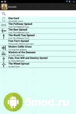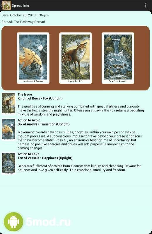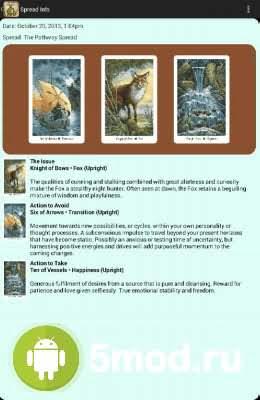 Wildwood Tarot - развлекательно-познавательный проект, что отправит пользователей в мистическое путешествие по мифологии времён кельтской Европы. Перед ними нечто среднее между интерактивной книгой, перемешанной с красивейшими иллюстрациями тире картами и инструкцией, как этим всем пользоваться при работе с реальной колодой. Удобное управление, высокодетализированные изображения, плавная анимация, возможность самостоятельно менять правила в случае необходимости, а так же многое другое порадует всех кто обожает подобный контент совмещающий реальность и виртуальный мир.