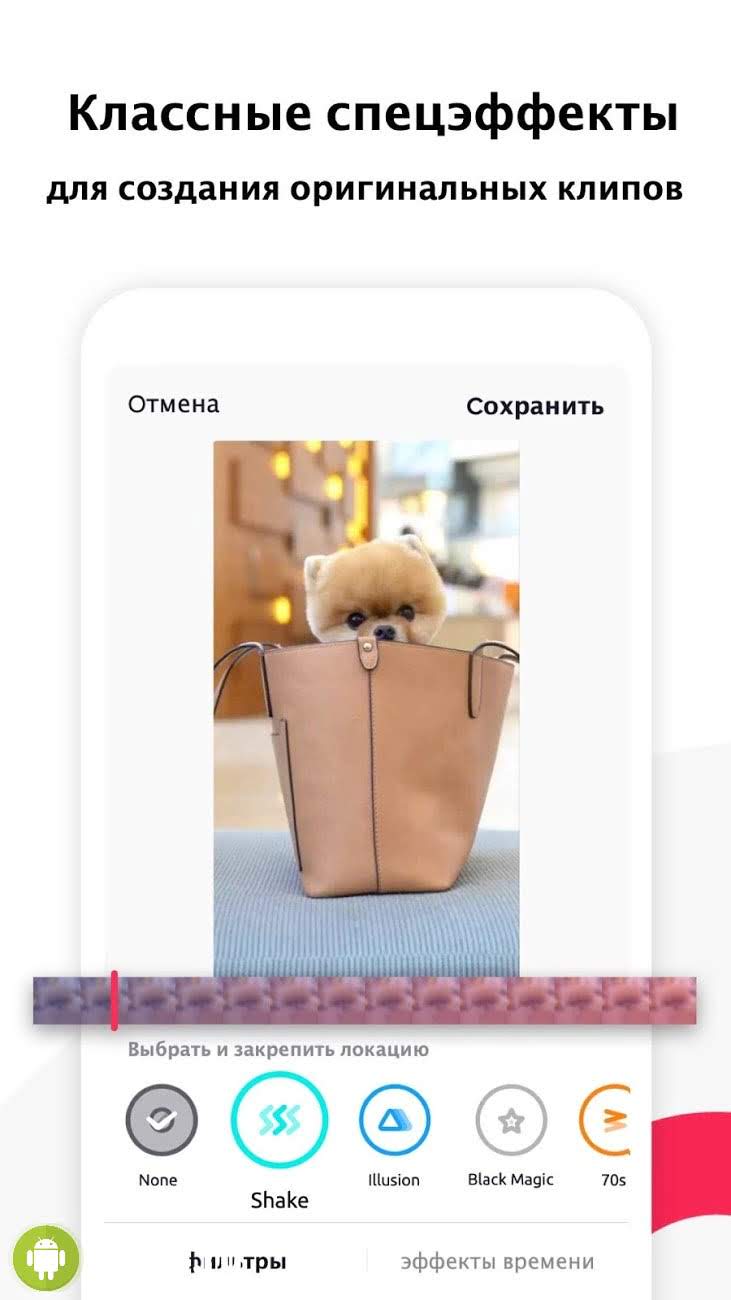 Все пользователи приложения могут заняться созданием крутого видеоконтента с использованием камеры своего устройства. Загрузка видео происходит как в режиме реального времени, так и из внутренней памяти смартфона/планшета. Продолжительность одного видео варьируется от 5 секунд до одной минуты.
