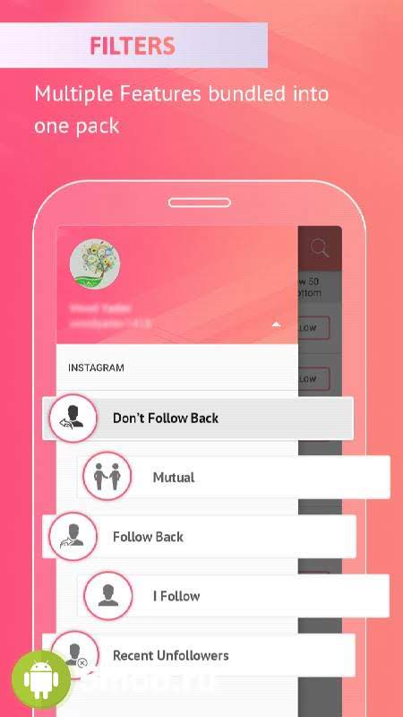 Followers & Unfollowers - функциональное и популярное приложение для настоящих фанатов знаменитой социальной сети. С его помощью пользователи смогут более продуктивно взаимодействовать с площадкой, регулировать работу того или иного аспекта, отслеживать подписавшихся и отписавшихся, устранять различные проблемы, пролистывать ленту новостей связанных с аккаунтом, добавлять людей в определённые списки для более быстрого нахождения в случае необходимости, а так же многое другое. Универсальность и наборы возможностей и сделали программу настолько востребованной у всех кто ведёт активный образ жизни в instagram.