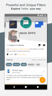 Talon for Twitter - приятное и зачастую очень необходимо приложение для всех кто любит проводить время в Твиттере или же практически живёт в нём. Стандартная оболочка очень быстро приедается и начинает раздражать глаза и мозг тех пользователей, что постоянно ищут другие варианты внешнего вида и дизайна. Данный проект включает в себе красивые, качественные и нестандартные макеты для изменения отображения любимой программы. Разные предустановленные варианты, возможность самостоятельно выбирать цвета для того или иного элемента делает Talon for Twitter крайне востребованным приложением.