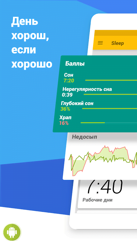 Sleep as Android – мощное приложение, которое включает в себя функции стандартного будильника и менеджера сна.