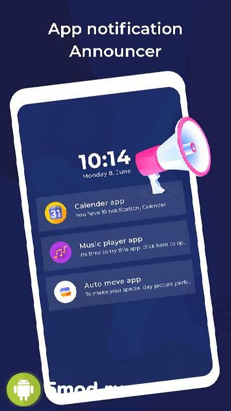 Voice Announcer - приложение для озвучания различных данных с мобильного гаджета. Пользователи смогут слышать содержимое сообщений и оповещений, узнавать заранее кто звонит, получать голосовые напоминания созданные самим собой, чтобы что-то не забыть и так далее. Гибкая система настройки обеспечит оптимальный режим работы в тех или иных уникальных условиях. Это пригодится всем кто не может постоянно отвлекаться на операции с устройством, не может оторваться от важных процессов или же просто ограничен в своих особенностях. Приятное исполнение, относительно "живой" голос робота и прочие факторы понравятся всем заинтересованным в подобном.