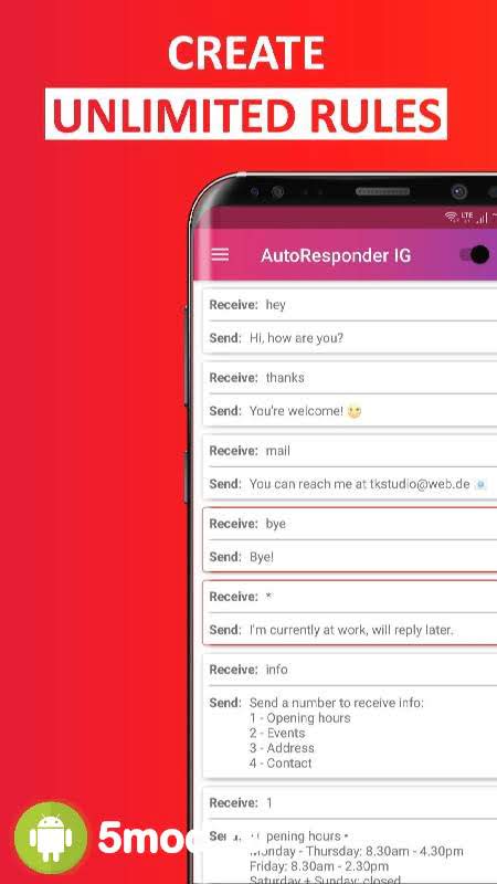 AutoResponder for Instagram - Auto Reply Bot - довольно полезное приложение для всех кто ведёт крайне активный образ жизни на просторах знаменитой социальной сети и просто уже физически не способен отвечать на все сообщения от своих подписчиков. Им предлагается бот. Умный и сообразительный, что следуя гибким настройкам и заданным параметрам будет автоматически реагировать на присланные комментарии, приветствовать новичков, осведомлять о новостях и так далее. При этом функционал содержит не только возможности автоответчика. Немного потраченного времени и подобный вариант ПО может стать отличным решением для широкого спектра ситуаций.