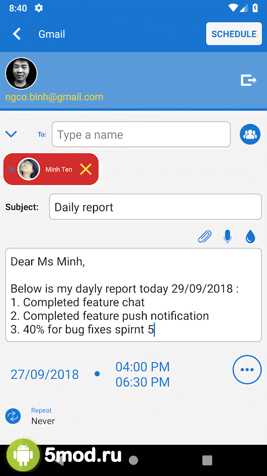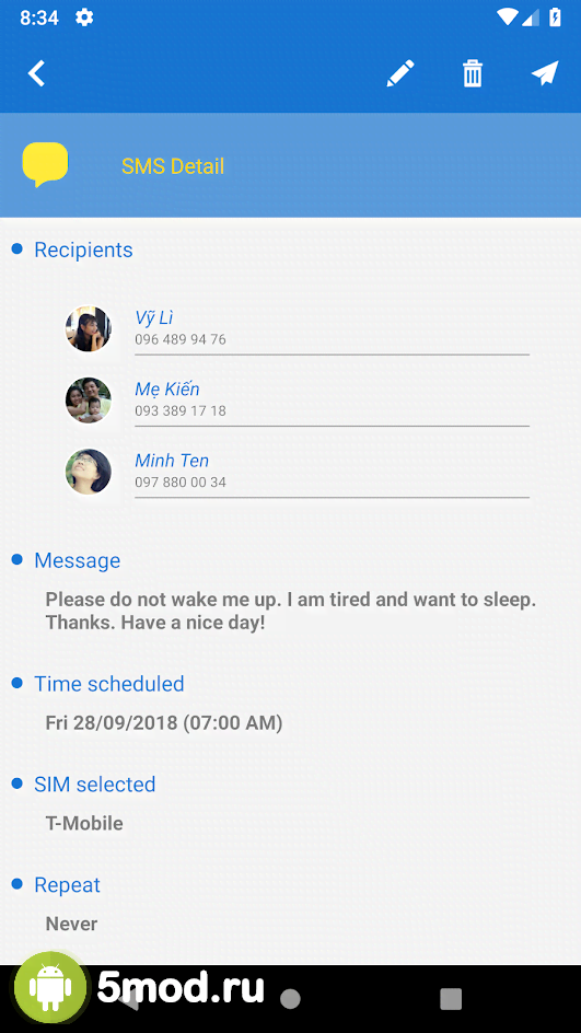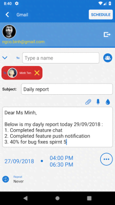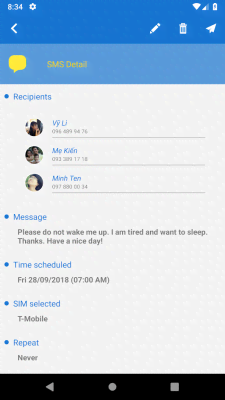 Do It Later (Auto Text) - приложение тире планировщик предлагающий пользователям весьма полезный спектр возможностей и функций, что существенно облегчит жизнь деловых людей и просто тех кто сталкивается с кучей задач и боится что-то забыть или пропустить. Программа предлагает запланировать звонки, отправку сообщений, писем на электронную почту и многое другое, что зачастую даже не требует участия пользователя именно в этот момент. Написанное СМС и не отправлено из-за разницы во времени и все прочие ситуации могут быть разрешены без лишних хлопот и проблем.