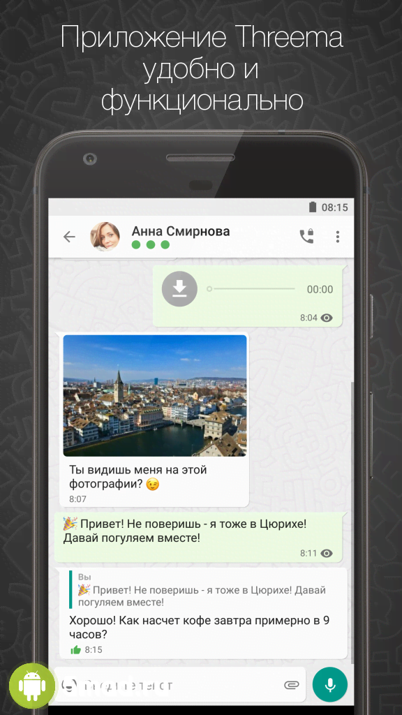 Приложение можно смело называть отличной альтернативой известным мессенджерам, а за счет повышенной безопасности можно попробовать использовать Threema на постоянной основе.