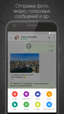 Функционал программы ничем не уступает аналогичным мессенджерам. То есть, вы также сможете: делиться фотографиями, видеороликами, обмениваться текстовыми и голосовыми сообщениями и многое другое. Также, в приложении есть возможность создания групповых чатов для общения с несколькими людьми одновременно. Самое главное – это безопасность, поэтому, всё что было отправлено вами или вам, зашифровывается и может быть открыто только получателем. Если вы боитесь за сохранность данных в случае утери или кражи устройства, то не забудьте установить пароль на запуск программы.
