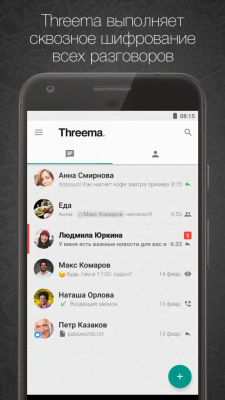 Threema - один из лучших мессенджеров в сфере безопасности переговоров между пользователями. Разработчики используют проприетарное сквозное шифрование для того, чтобы любой участник точно знал, что конфиденциальная информация не попадёт в чужие руки. Но так же программа является и отличным и дружественно настроенным способом для самого удобного и молниеносного общения. Голосовые вызовы, отправка файлов, размещение видеозаписей, создание групповых чатов, синхронизация контактов, возможность полного анонимного общения и многое другое и сделали программу настолько популярной среди пользователей.