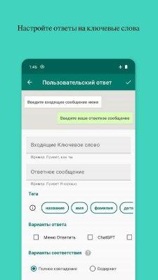 Whatauto - Auto Reply - очень привлекательное приложение для поклонников популярного мессенджера, что ведут крайне активный образ жизни в его функциональной среде. Представленное ПО предлагает им автоматизировать и упростить процесс ответа. Особенно это полезно, когда всё стандартно и даже банально. В наборе есть ряд официальных и лаконичных вариантов, а так же механика использования искусственного интеллекта для написания в автоматическом режиме более "человечного" результата. Есть и настройки, параметры, гибкая система триггеров и критериев, а так же многое другое. Что так же пригодится в дальнейшем.