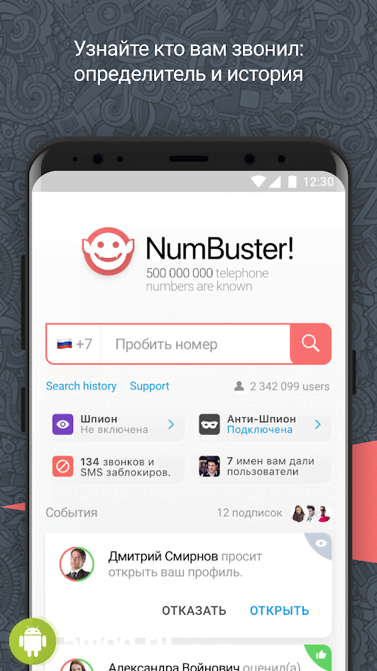 NumBuster определитель номеров – популярное приложение, которое позволит определить входящие звонки и sms-сообщения с незнакомых номеров. Вы сможете узнать с какого номера идёт входящий звонок, либо сообщение, даже если его нет в вашей записной книжке. Помните, что не стоит брать трубку и отвечать на сообщения неизвестным личностям.