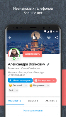 В приложении есть защита от номеров с которых поступает спам, надоедливых коллекторов, автосалонов и прочих злоумышленников, желающих обмануть вас. Черный список приложения можно редактировать самостоятельно, внося в него номера, от которых вы не хотите получить ни сообщений, ни звонков. Утилита получила удобный интерфейс на русском языке, множество полезных функций, а также несколько вариантов виджетов.