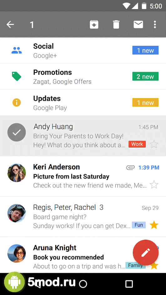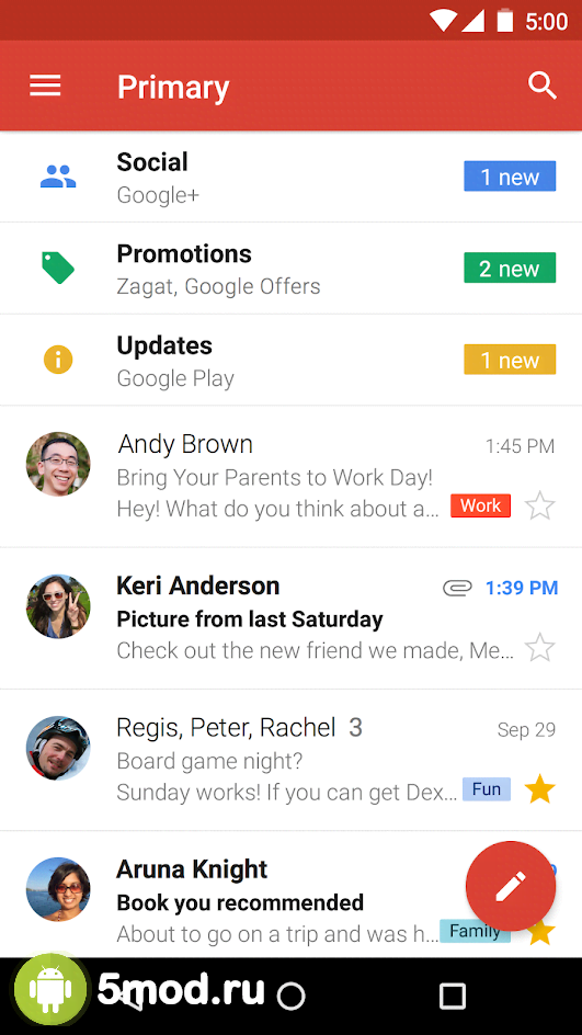 Google Gmail - полезное приложение для обладателей электронного почтового ящика от компании Google. Благодаря ему пользователи мобильных устройств смогут намного более удобно оперировать с ним, писать письма и так далее без участия в этом процесс какого-либо браузера. Сигнализирование о новых сообщения, автоматическая сортировка (спам, реклама, оповещения сразу же распределяются по разным категориям), поддержка нескольких аккаунтов и многие другие особенности и полезные функции не позволят пользователям почувствовать разницу между разными девайсами.