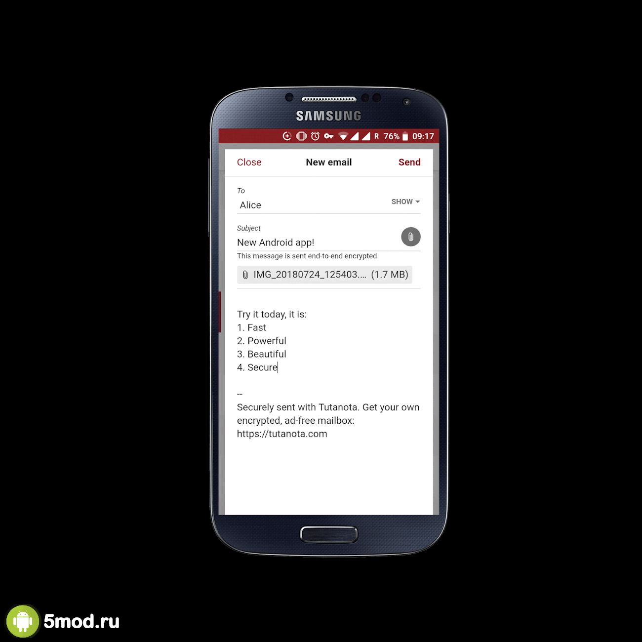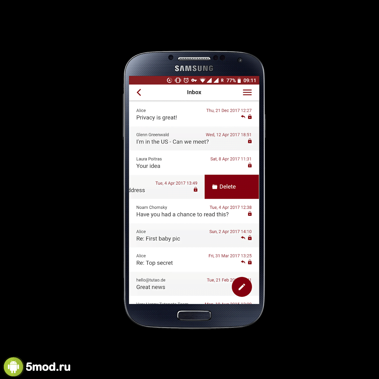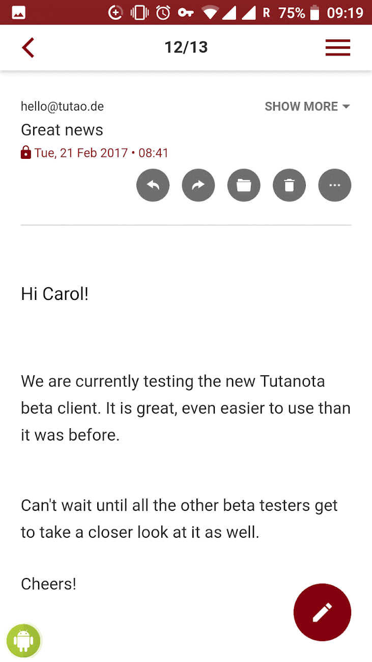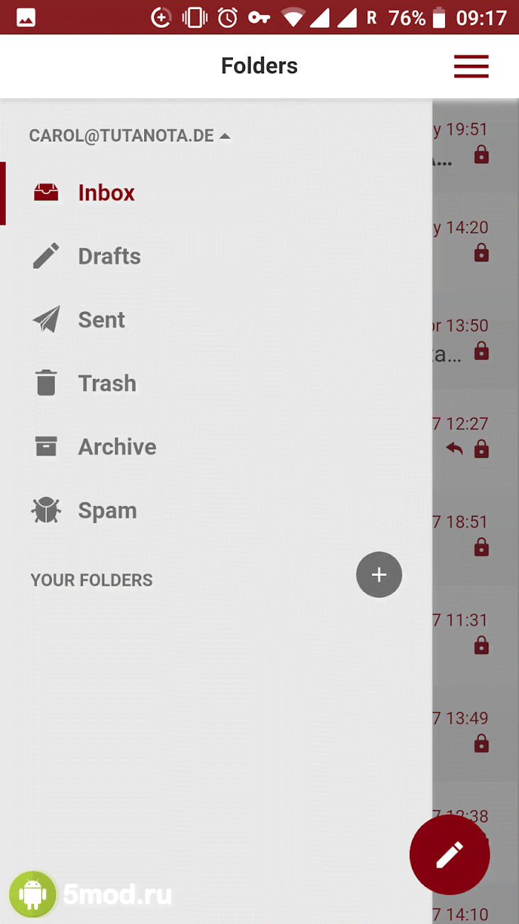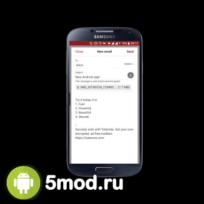 Tutanota: simply secure emails - ценное приложение для любого современного человека, что обеспокоен не только своим комфортом использования мобильным гаджетом, но и обеспечением достойного уровня безопасности для конфиденциальной информации, что проходит через него. В данном случае человек получает удобную и функциональную программу для работы с электронной почтой. Удобный поиск, система уведомлений, выбор параметров внешнего вида, синхронизация, сквозное шифрования и прочие особенности и качества обеспечивают отличную работу без какой-либо опасности из-за действий злоумышленников.