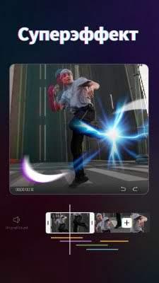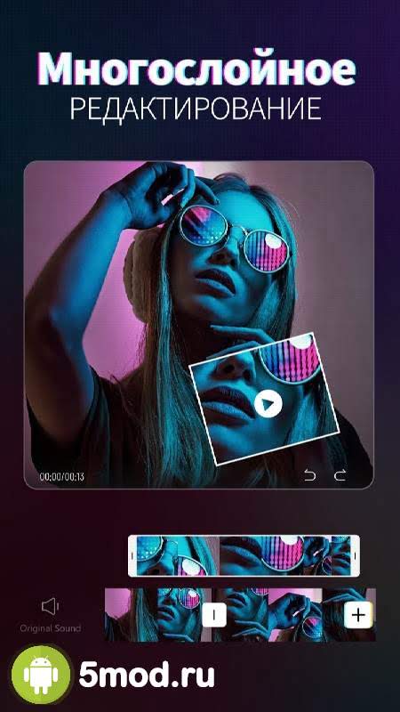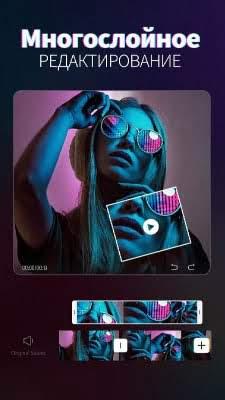 Используйте весь набор инструментов и обрезайте видео до нужной длительности, делите на определенные части или объединяйте их. Самое главное, что при монтаже, обрезке, объединении и сжатии, качество конечного видео не отличается от оригинала. Можно добавить фон или вовсе размыть его, повернуть видео под любым углом, добавить множество интересных фильтров и специальных эффектов, поменять контрастность, яркость и насыщенность картинки, прикрепить музыкальные композиции (используя встроенную библиотеку или выбрав файл из памяти устройства) и прикрепить к видео текст, предварительно подобрав цвет и желаемый шрифт.