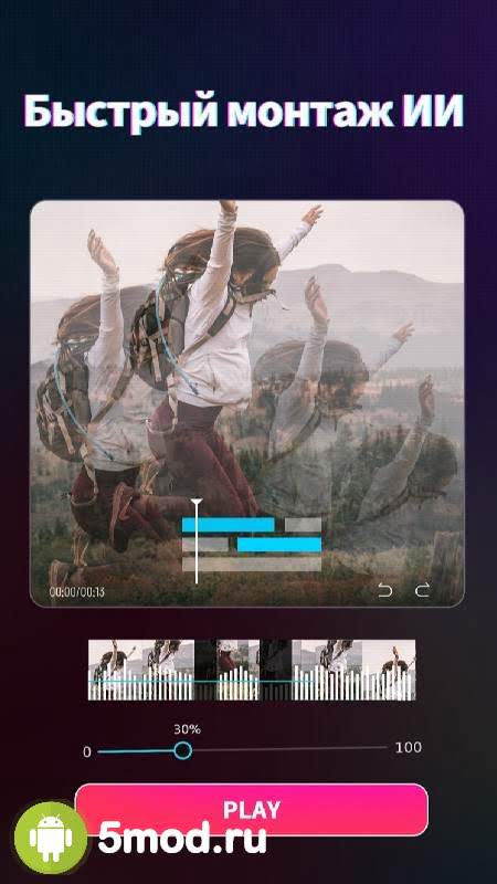 Приложение включает в себя большой выбор музыки, текстов, различных стикеров, спецэффектов и прочего, что позволит создавать уникальный и неповторимый ролик. Функционал программы достаточно обширен и позволяет: выполнять пакетное редактирование, обрезать видео, удалять фрагменты из ролика без звука (регулировать уровень музыки), удалять ненужные фрагменты и многое другое.