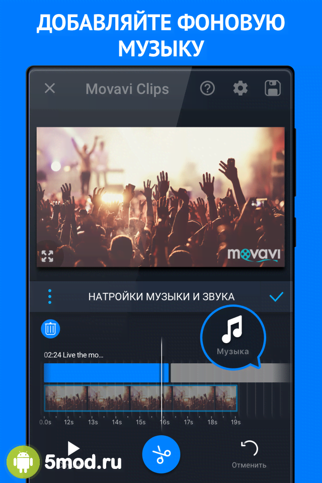 Video Editor Movavi Clips - удобный видеоредактор предназначенный для оперативного монтажа роликов и фильмов любой продолжительности и сложности. Удобное управление адаптированное под возможности скромных размеров экрана миниатюрного гаджета обеспечит пользователей всей необходимо свободой для продуктивного взаимодействия с функционалом программы. Обрезка и кадрирование, покадровый монтаж, переходы, наложение музыки, многослойное редактирование, работа с текстом и эффектами, различные предустановки и готовые проекты, а так же многое другое ответит всем требованиям даже самых взыскательных людей.