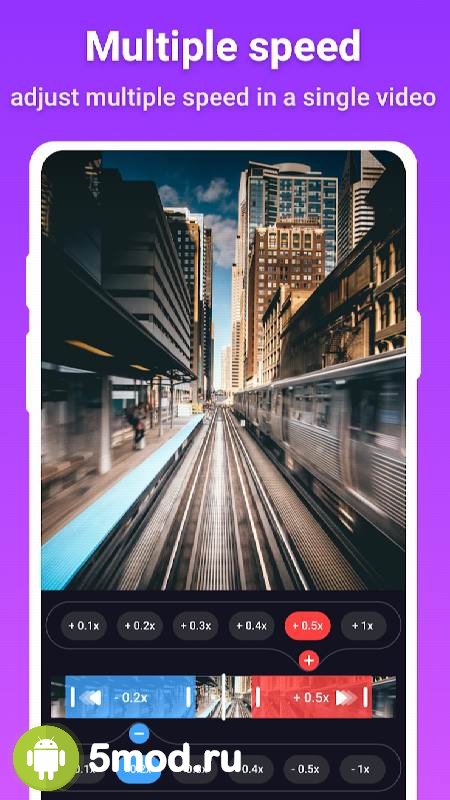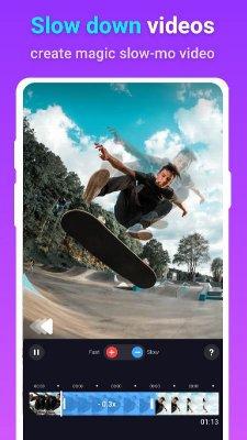 Slow motion - slow mo, fast mo - видеоредактор созданный преимущественно для того, чтобы пользователи имели максимально продуктивную и удобную среду для работы со скоростью времени в имеющихся у них исходных кадрах. Интуитивное управление обеспечивает оперативное достижение поставленных перед собой целей и реализацию любых идей, что так или иначе зависят от изменения динамичности в роликах на таймлайне. При этом никто не запрещает использовать сразу несколько эффектов на одном отрезке. Правильно расположение значений поможет превратить самое обычное видео в невероятно зрелищный результат.