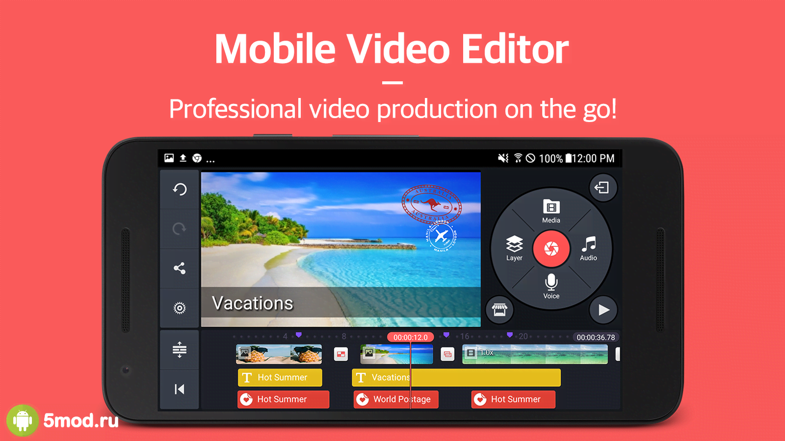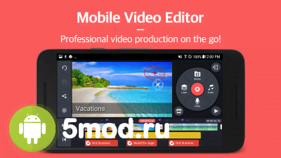 KineMaster - Pro Video Editor – один из самых мощных видеоредакторов, который обладает огромным набором простых в использовании инструментов и интерфейсом на русском языке, что не даст вам запутаться.