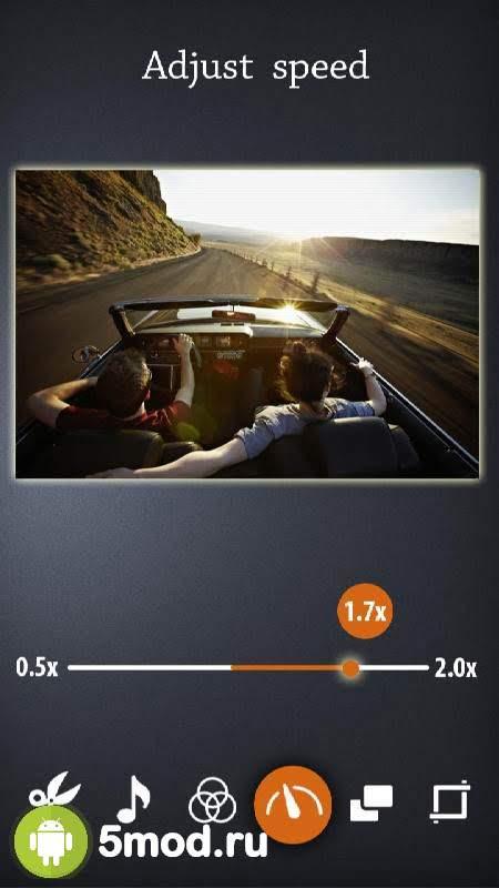 Video Editor and Converter Pro - ещё один проект, что позволяет создавать ролики разного уровня сложности и насыщенности прямо на мобильных устройствах, без обращения к профессиональным программам. Полный спектр настроек и инструментов для редактирования, быстрое создание GIF-изображений, разнообразные эффекты, полноценная работа со звуком, а так же многое другое обеспечивает достижение нужного результата. Которым потом можно быстро и без лишних действий поделиться с другими пользователями напрямую или же через социальные сети. Так же программа может привлечь весьма простым и удобным управлением для миниатюрных гаджетов.
