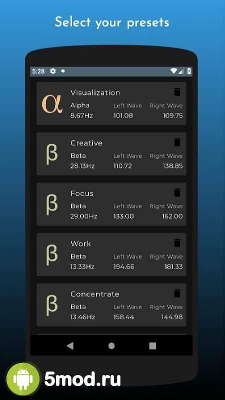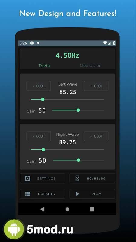 Brain Waves - Binaural Beats - приложение, что понравится всем поклонникам прослушивания бинауральных ритмов. Ведь здесь они получают не просто набор музыки или звуков, а собственную площадку для генерации волн именно той частоты, что идеально будет подходить для тех или иных людей. Удобное и наглядное управление помогает быстро находить желаемые параметры, сохранять профили, а после переключаться между ними в нужный момент. Конечно же следует использовать наушники для лучшего результата, а так же обдуманно выставлять значения, чтобы не повредить слух. Программу стоит опробовать любому заинтересованному в подобном.